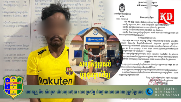 ខេត្តសៀមរាប៖ បុរសម្នាក់ដែលធ្លាប់ជាប់ពន្ធធនាគារម្ដងហើយ មិនព្រមកែប្រែខ្លួន តែបែរជាប្រព្រឹត្តទង្វើរ ដែលសង្គមស្អប់ខ្ពើមដដែល ចុងក្រោយត្រូវសមត្ថកិច្ចឃាត់ខ្លួននិងបញ្ជូនទៅពន្ធធនាគារសារជាថ្មី នៅថ្ងៃទី ២២ ខែធ្នូ ឆ្នាំ២០២៣នេះ។