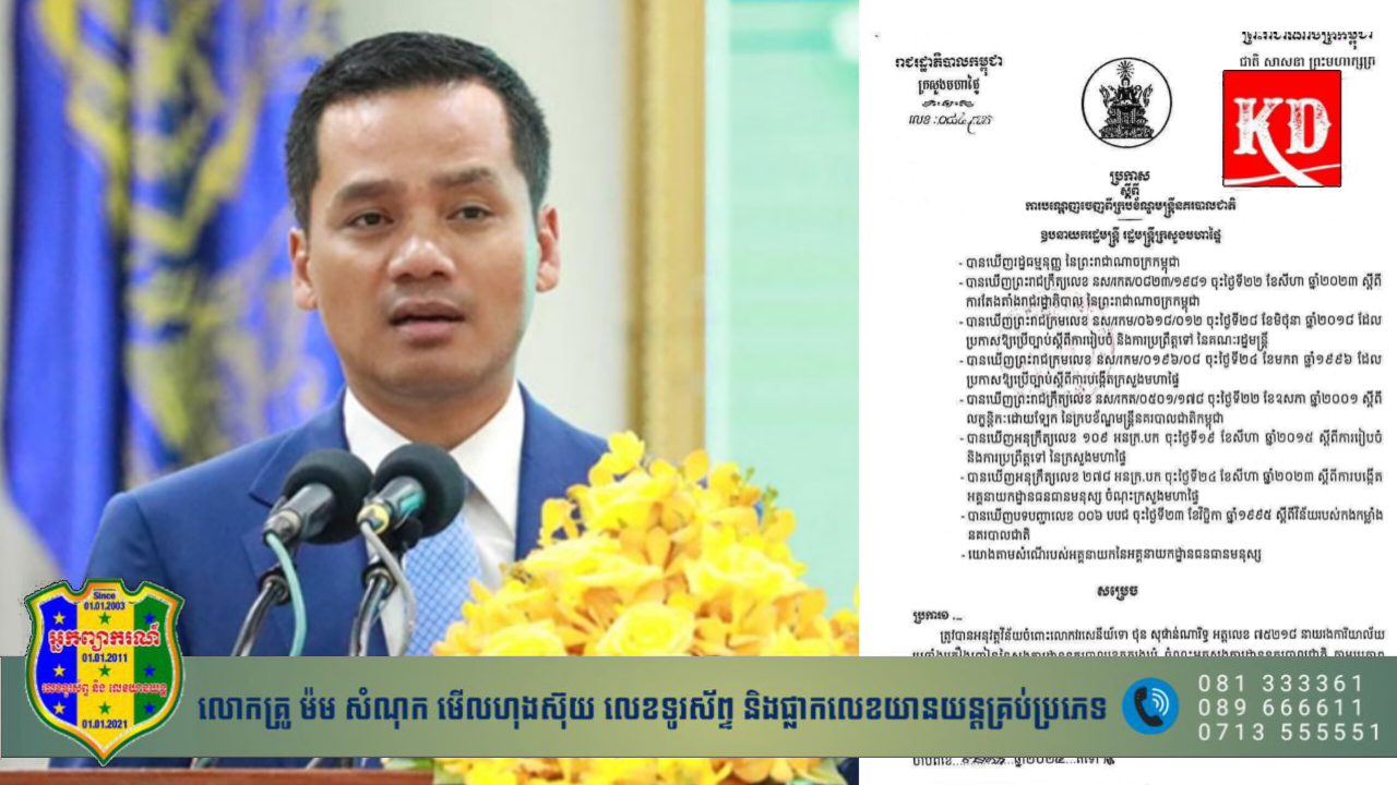 រាជធានីភ្នំពេញ៖ បណ្តេញ លោក វរសេនីយ៍ទោ ថុន សុផាន់ណារិទ្ធ អត្តលេខ ៧៥២១៨ នាយរងការិយាល័យប្រឆាំងគ្រឿងញៀន នៃស្នងការដ្ឋាននគរបាលខេត្តត្បូងឃ្មុំ ចេញពីក្របខ័ណ្ឌមន្ត្រីនគរបាលជាតិ។ នេះបើយោងតាម សេចក្តីចេញប្រកាស របស់ក្រសួងមហាផ្ទៃ លេខ ០៨៤ ប្រក ដែលចុះហត្ថលេខាដោយ ឯកឧត្តមអភិសន្តិបណ្ឌិត ស សុខា ឧបនាយករដ្ឋមន្ត្រី រដ្ឋមន្ត្រីក្រសួងមហាផ្ទៃ កាលពីថ្ងៃទី ០៥ ខែមករាឆ្នាំ ២០២៤កន្លងទៅ៕KD