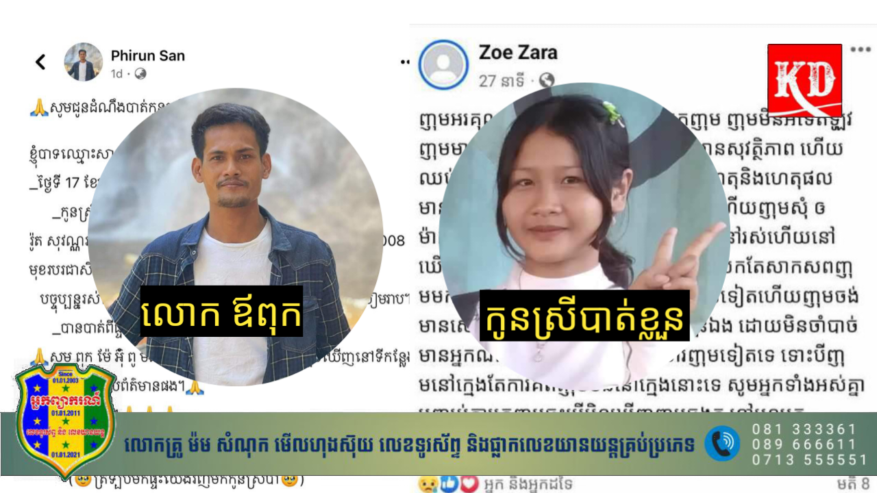 ខេត្តសៀមរាប៖ បន្ទាប់ឪពុកបង្ហោះសារដង្ហោយហៅ «ត្រឡប់មកផ្ទះយើងវិញមកកូនស្រីប៉ា» ក្រោយកូនស្រីបានបាត់ចេញពីផ្ទះ មិនដឹងមូលហេតុ ដើម្បីឲ្យមហាជនជួយរក និងជាពិសេសសុំឱ្យកូនស្រីបានត្រឡប់មកផ្ទះវិញដោយសុវត្ថិភាពនោះ ក៍ត្រូវកូនផ្ញើរសារគម្រាមយ៉ាងចុកឈាមមកវិញផងដែរ។