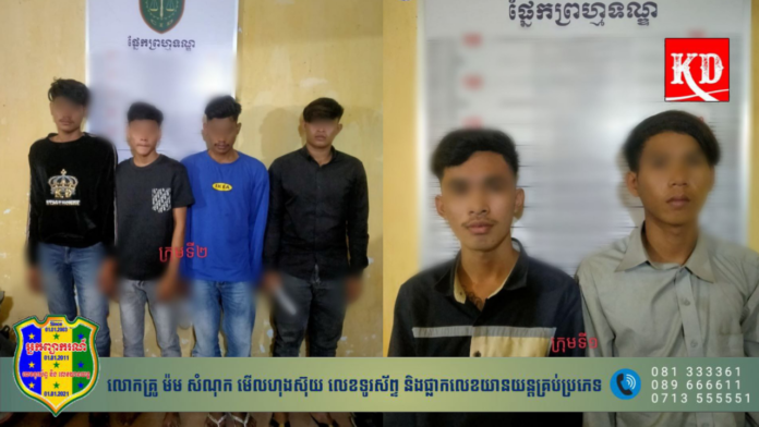 ខេត្តកណ្តាល៖ នៅថ្ងៃទី ២៣ ខែមករា ឆ្នាំ២០២៤ ស្នងការដ្ឋាននគរបាលខេត្តកណ្តាល បានឃាត់ខ្លួនក្រុមក្មេងទំនើង ដែលធ្វើសកម្មភាពវាយគ្នា នៅចំណុចមុខវិទ្យាល័យព្រែកស្លែង ស្រុកកណ្តាលស្ទឹង ខេត្តកណ្តាល បន្ទាប់ពីមានគណនីហ្វេសប៊ុក ឈ្មោះ«Mrr Rathana» បានបង្ហោះវីដេអូសកម្មភាពក្មេងទំនើងពីរក្រុមវាយគប់គ្នា ភ្ជាប់ដោយខ្លឹមសារថា៖ «អូនៗលេងគ្នា ២៣/០១/២៤ ពូឡើងភ័យ នៅចំណុចមុខវិទ្យាល័យព្រែកស្លែង ស្រុកកណ្តាលស្ទឹង ខេត្តកណ្តាល» ។