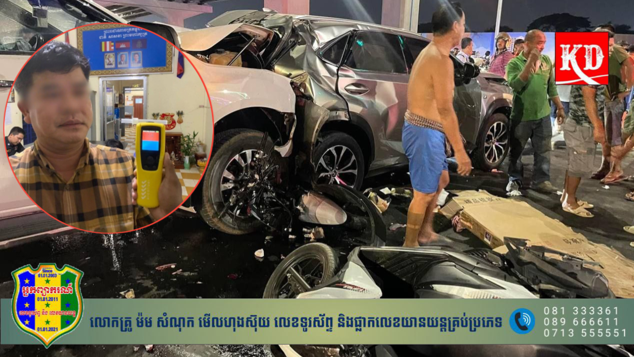 សូមរំលឹកជូនផងដែរថា កាលពីវេលាម៉ោង ១៨ និង ៤០នាទីយប់ថ្ងៃទី ២០ ខែមករា ឆ្នាំ២០២៤ កន្លងទៅ ត្រង់ចំណុចក្រោមស្ពានអាកាសឬស្សីកែវ ស្ថិតក្នុងភូមិមិត្តភាព សង្កាត់ឬស្សីកែវ ខណ្ឌឬស្សីកែវ រាជធានីភ្នំពេញ មានករណីបុរសម្នាក់ ដែលគេស្គាល់ថាមានឈ្មោះ នាង សំអូន ភេទប្រុស អាយុ៥៦ឆ្នាំ មុខរបរមន្ត្រីក្រសួងហិរញ្ញវត្ថុ មានទីលំនៅផ្ទះលេខ៤០A ផ្លូវលេខ២១០ ភូមិ៤ សង្កាត់ច្រាំងចំរេះ១ ខណ្ឌឫស្សីកែវ រាជធានីភ្នំពេញ បានបើករថយន្ដ Ford Ranger ក្នុងស្ថានភាពស្រវឹង ហើយបុករះម៉ូតូ និងរថយន្ដជាច្រើនគ្រឿង បណ្ដាលឱ្យមនុស្សប្រុស-ស្រីចំនួន ០៤នាក់ បានស្លាប់បាត់បង់ជីវិតភ្លាមៗ នៅកន្លែងកើតហេតុ និងចំនួន ០៤នាក់ផ្សេងទៀត រងរបួសធ្ងន់ស្រាល គួរឲ្យសង្វេគបំផុត៕KD