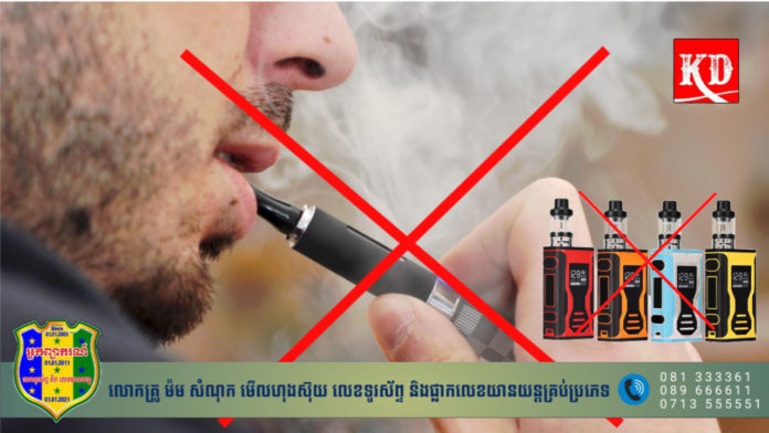 ក្រសួងសុខាភិបាល នៃព្រះរាជាណាចក្រកម្ពុជា បានជម្រាបជូនសាធារណជនឱ្យបានជ្រាបថា កន្លងមក អាជ្ញាធរជាតិប្រយុទ្ធប្រឆាំងគ្រឿងញៀនបានហាមឃាត់ការនាំចូល ការជួញដូរ ការធ្វើអាជីវកម្ម និងការប្រើប្រាស់បារីអេឡិចត្រូនិក (E-cigarette) ផលិតផលស៊ីហ្សា (SHISHA) និងផលិតផល អេចណ៍ ធីភី (HTP-Heated Tobacco Product) ដោយហេតុផលថា ផលិតផលទាំងនេះបង្កឱ្យមានផលប៉ះពាល់ ដល់សុខភាព និងបណ្តាលឱ្យអ្នកប្រើប្រាស់ងាយនឹងទទួលភាពញៀនដោយសារធាតុញៀនផ្សេងទៀត។