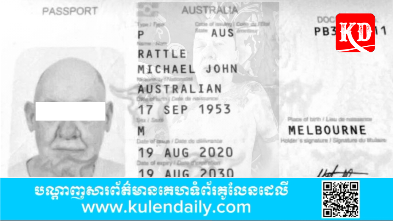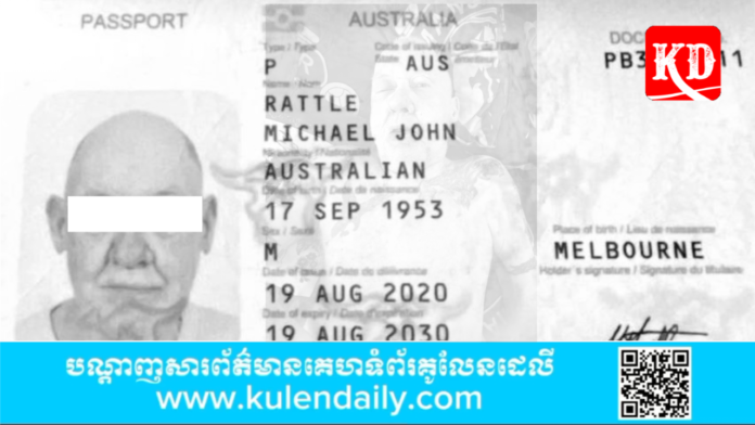 ប្រភពពីសមត្ថកិច្ចបានឱ្យដឹងថា បុរសជនអូស្ត្រាលី ដែលបានស្លាប់នោះមានឈ្មោះ RATTLE MICHAEL អាយុ ៧១ឆ្នាំ មុខរបរ គ្មាន កាន់លិខិតឆ្លងដែនលេខ PB៣៩៤៨៧១១ ស្នាក់នៅបណ្ដោះអាសន្នទីតាំងកើតហេតុខាងលើ។