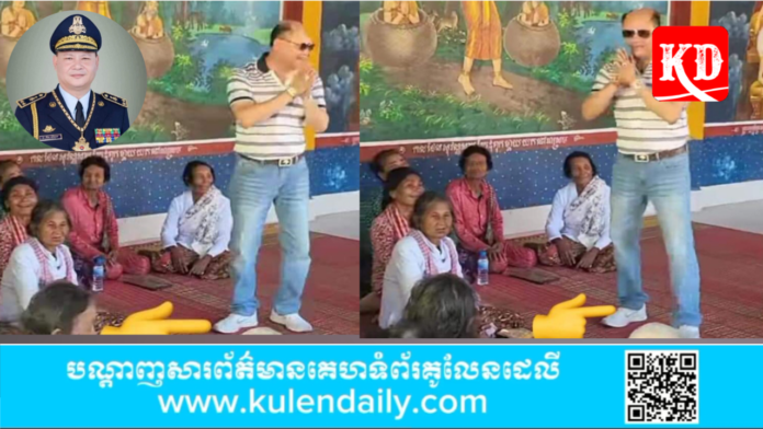 រាជធានីភ្នំពេញ៖ កាលពីថ្ងៃទី ២២ ខែកុម្ភៈ ឆ្នាំ២០២៣កន្លងទៅ លោកឧត្តមសេនីយ៍ទោ ប៊ន សំអាត ដែលអះអាងខ្លួនលោកថា អនុប្រធាននាយកដ្ឋានព្រហ្មទណ្ឌ នៃអគ្គស្នងការដ្ឋាននគរបាលជាតិ ក្រសួងមហាផ្ទៃ បានពាក់ស្បែកជើងឈរលើកម្រាលកន្ទេល ក្នុងសាលាឆទាន