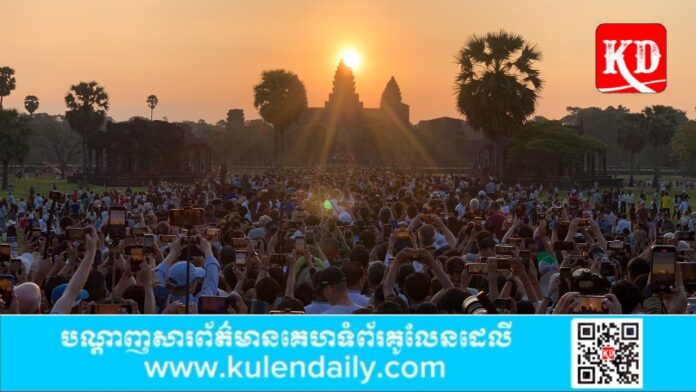ខេត្តសៀមរាប៖ នៅព្រឹកថ្ងៃទី២១ ខែមីនា ឆ្នាំ២០២៤នេះ ព្រឹត្តិការណ៍សមរាត្រី ភ្ញៀវទេសចរជាតិ និងអន្តរជាតិ ចំនួនជាង១ម៉ឺននាក់ បានក្រោកមកតាំងពីម៉ោង៥ព្រឹក ដើម្បីរង់ចាំទស្សនាព្រឹត្តិការណ៍ព្រះអាទិត្យរះឡើងកាត់តាមកំពូលកណ្តាល នៃប្រាសាទអង្គរវត្ត។