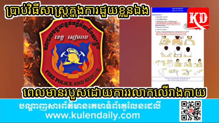 ខេត្តសៀមរាប៖រ អង្គភាពនគរបាលបង្ការពន្លត់អគ្គីភ័យនិងសង្គ្រោះ នៃស្នងការដ្ឋាននគបាលខេត្តសៀមរាប ប្រាប់អំពីវិធីសាស្រ្តក្នុងការជួយខ្លួនឯង ពេលមានរបួសដោយការរលាកលើរាងកាយ។