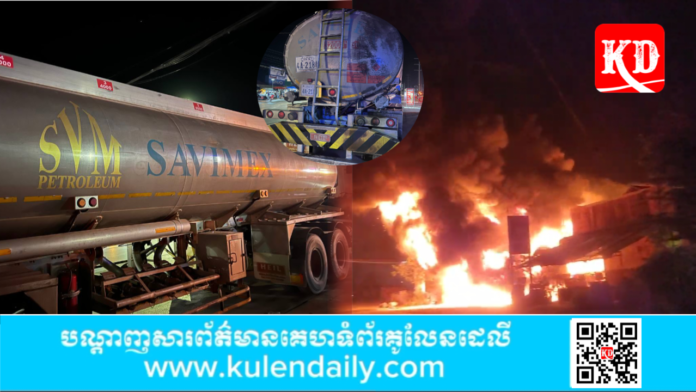 អធិការដ្ឋាននគរបាលស្រុកពួកបញ្ជាក់ថា នៅមុនពេលកើតហេតុ វេលាម៉ោងប្រហែល ១៩ និង ០៥នាទី មានរថយន្តដឹកប្រេងសាំង ០១គ្រឿង របស់ក្រុមហ៊ុនសាវីមិចភេត្រូលាម ( SVM PETROLEUM) ផ្លាកលេខ ភ្នំពេញ ៣B-៨៩៨២ សណ្ដោងស៊ឺមីរ៉ឺម៉ក ផ្លាកលេខ ភ្នំពេញ