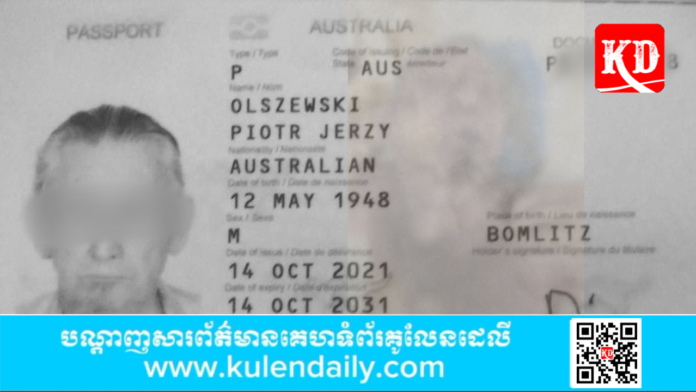 ប្រភពពីសមត្ថកិច្ចបានឲ្យដឹងថា ជនជាតិអូស្ត្រាលី ដែលគេប្រទះឃើញស្លាប់នោះ មានឈ្មោះ OLSZEWSKI PIOTR JERZY ភេទប្រុស អាយុ ៧៦ឆ្នាំ មុខរបរគ្មាន កាន់លិខិតឆ្លងដែនលេខ PB៣៩១៥៧១៨ ស្នាក់នៅទីតាំងកើតហេតុខាងលើ ។