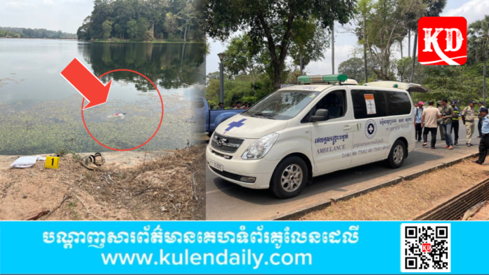 ដោយឡែកតាមការបំភ្លឺរបស់ឈ្មោះ អ៊ុំ បូរិន ភេទប្រុស អាយុ ១៥ឆ្នាំ មុខរបរ សិស្ស ទីលំនៅបច្ចុប្បន្នៈ ភូមិទក្សិណខាងត្បូង សង្កាត់គោកចក ក្រុងសៀមរាប ខេត្តសៀមរាប បានរៀបរាប់បំភ្លឺថា នៅថ្ងៃទី០៩ ខែមេសា ឆ្នាំ២០២៤ វេលាម៉ោងប្រហែល០៩ និង០០នាទី ខ្ញុំបាទបានដើរទៅមើលត្រីនៅកសិន្ទុអង្គរខាងត្បូង ជាមួយនឹងឈ្មោះ ខ្មុង (មិនស្គាល់ត្រកូល) ភេទប្រុស អាយុប្រហែល ២០ឆ្នាំ ខណៈពេលទៅដល់ចំណុចកសិន្ទុអង្គរខាងត្បូង ស្ថិតនៅភូមិក្រវ៉ាន់ខាងត្បូង សង្កាត់នគរធំ ក្រុងសៀមរាប ខេត្តសៀមរាប ភ្លាមនោះស្រាប់តែឃើញស្បែកជើងចំនួន០១គូរ ទុកចោលលើច្រាំងមាត់កសិន្ទុអង្គរ បន្ទាប់មកខ្ញុំបាទក៏បានដើររកមើលតែពុំឃើញ ហើយខ្ញុំបាទបានមើលទៅក្នុងទឹកកសិន្ទុអង្គរក៏ឃើញមានមនុស្សស្លាប់អណ្ដែតទឹក មិនដឹងមនុស្សស្រី ឬ មនុស្សប្រុសនោះទេ ពេលនោះខ្ញុំបាទក៏បានរត់ទៅប្រាប់ឪពុករបស់ខ្ញុំ បន្ទាប់មកឪពុកខ្ញុំបានខលទូរស័ព្ទរាយការណ៍ទៅសមត្ថកិច្ចប៉ុស្តិ៍នគរបាលរដ្ឋបាលគោកចក មួយសន្ទុះក្រោយមកក៏ឃើញមានសមត្ថកិច្ចមកដល់ ហើយបានចុះស្រង់សាកសពយកមកដាក់នៅលើគោក ពេលនោះទើបខ្ញុំដឹងថាសាកសពជាមនុស្សស្រីមានអាយុប្រហែល ៦០ឆ្នាំ កម្ពស់ប្រហែល ១៥៥ សង់ទីម៉ែត្រ មាឌធំ ពាក់អាវក្រហមលាយពណ៌ចម្រុះ អាវដៃខ្លី ។