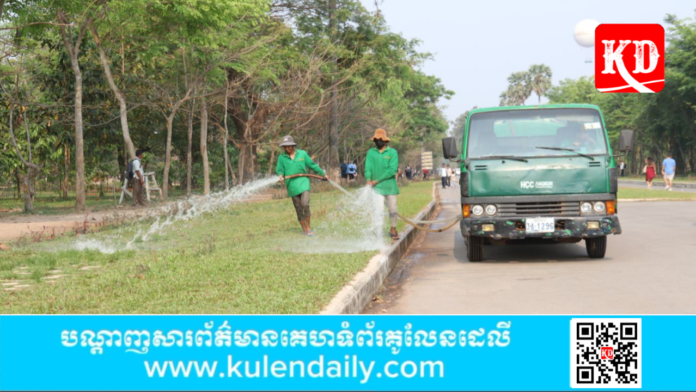 ខេត្តសៀមរាប៖ រដូវប្រាំងចូលមកដល់ បានធ្វើឱ្យស្មៅនិងរុក្ខជាតិមួយចំនួនក្រៀមស្វិតស្រពោននៅក្នុងតំបន់រមណីយដ្ឋានអង្គរ ប៉ុន្តែទោះជាយ៉ាងណា ក៏អាជ្ញាធរជាតិអប្សរាបានប្រឹងប្រែងថែទាំស្រោចស្រពស្មៅនៅតាមសួនកសិន្ធុប្រាសាទអង្គរវត្តឱ្យនៅតែមានពណ៌បៃតង។ ក្នុងនោះដែរ ចំពោះវាលស្មៅនៅក្នុងបរិវេណប្រាសាទអង្គរវត្ត ក៏អាជ្ញាធរជាតិអប្សរា បានរៀបចំប្រព័ន្ធស្រោចស្រពវាលស្មៅទាំងនោះផងដែរ។