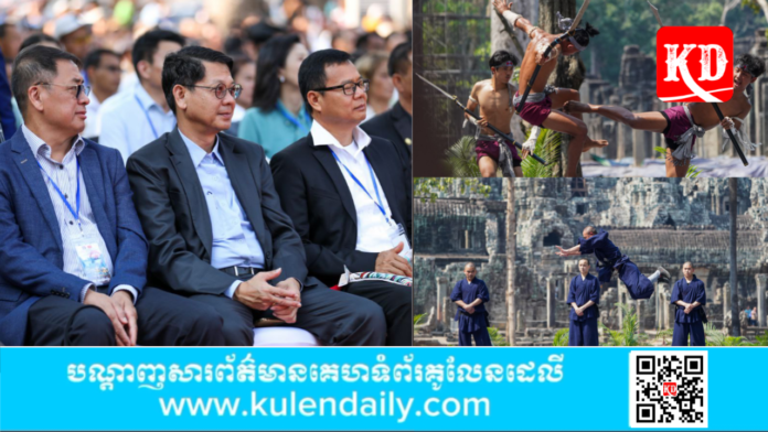 ខេត្តសៀមរាប៖ នៅព្រឹកថ្ងៃទី២៤ ខែមេសា ឆ្នាំ២០២៤នេះ ឯកឧត្តមបណ្ឌិត ហង់ ពៅ អគ្គនាយកអាជ្ញាធរជាតិអប្សរា បានអញ្ជើញចូលរួមក្នុងកម្មវិធីសម្ដែងក្បាច់គុនសាវលីញ និងក្បាច់គុនល្បុក្កតោនៅអង្គរ (When Shaolin Meets Bokator at Angkor) នៃយុទ្ធនាការ “ឆ្នាំនៃការផ្លាស់ប្ដូរប្រជាជននិងប្រជាជនកម្ពុជា-ចិន២០២៤” ដែលរៀបចំនៅបរិវេណខាងជើងប្រាសាទបាយ័ន។ ព្រឹត្តិការណ៍នេះឆ្លុះបញ្ចាំងឱ្យឃើញពីការយកចិត្តទុកដាក់របស់ប្រមុខរាជរដ្ឋាភិបាលទាំងពីរ ពិសេសតាមរយៈក្រសួងទេសចរណ៍កម្ពុជា និងរដ្ឋបាលខេត្តហឺណានក្នុងការពង្រឹង និងពង្រីកចំណងមិត្តភាពកម្ពុជា-ចិន ស្របតាមស្មារតី «មិត្តដែកថែប និងសហគមន៍វាសនារួមកម្ពុជា-ចិន ប្រកបដោយភាពស៊ីជម្រៅ និងភាពជាក់ស្ដែង ក៏ដូចជាក្របខ័ណ្ឌកិច្ចសហប្រតិបត្តិការត្បូងពេជ្ររវាងកម្ពុជា-ចិន ដែលផ្តោតលើវិស័យអាទិភាពចំនួន៦ ក្នុងនោះរួមបញ្ចូលទាំងការផ្លាស់ប្ដូរប្រជាជន និងប្រជាជន។