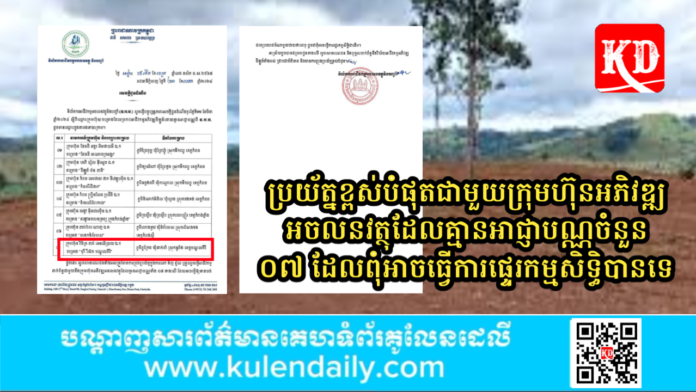 ១)-ក្រុមហ៊ុន ដែនដី អង្គរ អិមផាយអី ឯ.ក គម្រោង “ដែនដី អាណាចក្រអង្គរ” ទីតាំងគម្រោង ភូមិព្រៃតុម្ព ឃុំព្រៃឃ្មុំ ស្រុកទឹកឈូ ខេត្តកំពត។