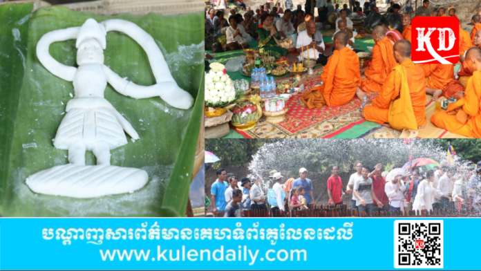 ខេត្តសៀមរាប៖ អ្នកឃុំលាងដៃ ស្រុកអង្គរធំ បានប្រារព្ធពិធីសុំទឹកភ្លៀងនៅប្រាសាទនាគព័ន្ធ ក្នុងបំណងបន់ឱ្យមានភ្លៀងធ្លាក់ឆាប់ៗ ស្របពេលរដូវកាលធ្វើស្រែចម្ការចូលដល់ តែនៅពុំទាន់មានភ្លៀងនៅឡើយ។ កិច្ចពិធីនេះធ្វើរយៈពេលមួយយប់ពីរថ្ងៃ ដោយរសៀលថ្ងៃទី១ មានពិធីប្រុងពាលី ពិធីបួងសួង ពិធីបញ្ជាន់រូប និងពិធីសូត្រមន្ត។ លុះដល់ព្រឹកស្អែក មានពិធីប្រគេនចង្ហាន់ព្រះសង្ឃ ពិធីរាប់បាត្រ និងពិធីប្រទក្សិណ៣ជុំដើម្បីចាក់ទឹកចូលក្នុងទ ដើម្បីបង្ហូរចេញពីអាងធំចូលទៅអាងតូចតាមទិសទាំង៤។ កំឡុងពេលដើរប្រទក្សិណនោះក៏មានការចាក់ និងជះទឹកដាក់គ្នាយ៉ាងអធិកអធម ដែលជាការនិមិត្តថាមានភ្លៀងធ្លាក់មកមែន។