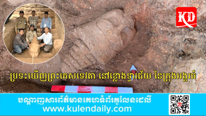 ខេត្តសៀមរាប៖ កន្លងទៅថ្មីៗនេះ ក្រុមការងារកំណាយស្រាវជ្រាវរបស់អាជ្ញាធរជាតិអប្សរា បានប្រទះឃើញព្រះកេសទេវតាចំនួនមួយ ដែលបានកប់ក្នុងរណ្ដៅកំណាយនៅខ្លោងទ្វារជ័យ នៃក្រុងអង្គរធំ។
