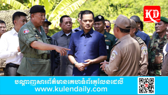 ខេត្តបន្ទាយមានជ័យ៖ ក្រោមអធិបតីភាពឯកឧត្តមអភិសន្តិបណ្ឌិត ស សុខា ឧបនាយករដ្ឋមន្ត្រី រដ្ឋមន្ត្រីក្រសួងមហាផ្ទៃ និងជាអនុប្រធានអាជ្ញាធរជាតិប្រយុទ្ធប្រឆាំងគ្រឿងញៀន កិច្ចប្រជុំស្ដាប់របាយការណ៍ និងផ្ដល់អនុសាសន៍លើការងារប្រយុទ្ធប្រឆាំងគ្រឿងញៀនខុសច្បាប់ ក្នុងខេត្តបន្ទាយមានជ័យ ត្រូវបានរៀបចំឡើងក្នុងបរិវេណបញ្ជាការដ្ឋានវរៈនគរបាលការពារព្រំដែនគោក លេខ៨០៧ ស្ថិតក្នុងឃុំគោករមៀត ស្រុកថ្មពួក ក្បែរព្រំដែនកម្ពុជា ថៃ នាព្រឹកថ្ងៃទី២៧ ខែឧសភា ឆ្នាំ២០២៤។ កិច្ចប្រជុំនេះមានការចូលរួមពីប្រតិភូថ្នាក់ដឹកនាំជាន់ខ្ពស់ក្រសួងមហាផ្ទៃ ថ្នាក់ដឹកនាំរដ្ឋបាលខេត្តបន្ទាយមានជ័យ តំណាងសាលាដំបូងខេត្ត និងថ្នាក់ដឹកនាំកងកម្លាំងចម្រុះ ដែលប្រចាំការតាមបណ្ដាច្រកទ្វារ និងកម្លាំងការពារព្រំដែន។