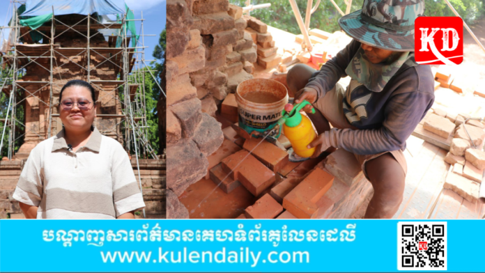 កញ្ញា ដយ ពេជ្រជីរ៉ា វិស្វករនៃអាជ្ញាធរជាតិអប្សរា និងជាអ្នកគ្រប់គ្រងការដ្ឋានជួសជុលនៅប្រាសាទបាតជុំ ឱ្យដឹងថាបច្ចុប្បន្នក្រុមការងារកំពុងជួសជុលតួប៉ម