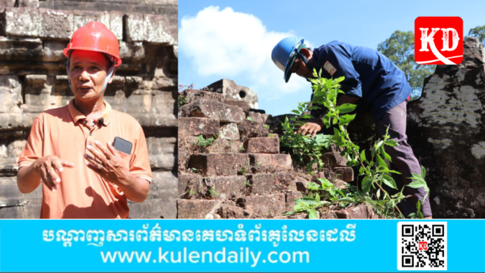ខេត្តសៀមរាប៖ នាដើមរដូវវស្សា ដែលមានភ្លៀងធ្លាក់ជាបន្តបន្ទាប់នេះ ក្រុមការងារសម្អាតរុក្ខជាតិតាមប្រាសាទនៃនាយកដ្ឋានអភិរក្សប្រាសាទ និងបុរាណវិទ្យារបស់អាជ្ញាធរជាតិអប្សរា កាន់តែមមាញឹកក្នុងការកាត់សម្អាតដើមរុក្ខជាតិ ឬស្មៅដុះនៅតាមប្រាសាទទាំងក្នុង និងក្រៅតំបន់អង្គរ ដើម្បីកាត់បន្ថយហានិភ័យដល់ប្រាង្គប្រាសាទ។