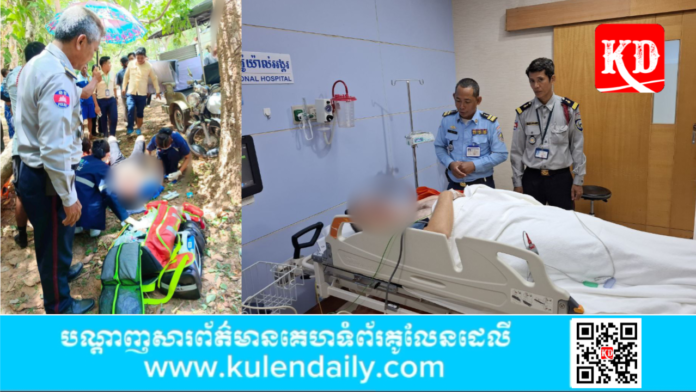 ខេត្តសៀមរាប៖ បុរសជនជាតិអូស្ត្រាលីពីរនាក់ ដែលស្នាក់នៅសណ្ឋាគារ JAYA HOUSE រងរបួសធ្ងន់ស្រាល ក្នុងហេតុការណ៍ រ៉ឺម៉កម៉ូតូ ដែលពួកគាត់ធ្វើដំណើរបុកត្រូវគល់ឈើ បន្ទាប់ពីគេចពីម៉ូតូ ២គ្រឿងប៉ះគ្នាបណ្តាលអោយដួល នៅលើផ្លូវក្រវ៉ាន់ ត្រង់ចំណុច ខាងមុខសាលាបឋមសិក្សាក្រវ៉ាន់ ភូមិក្រវ៉ាន់ សង្កាត់ នគរធំ ក្រុងសៀមរាប ខេត្តសៀមរាប វេលាម៉ោង១៣ និង ០០នាទីថ្ងៃទី ១៩ ខែមិថុនា ឆ្នាំ២០២៤។