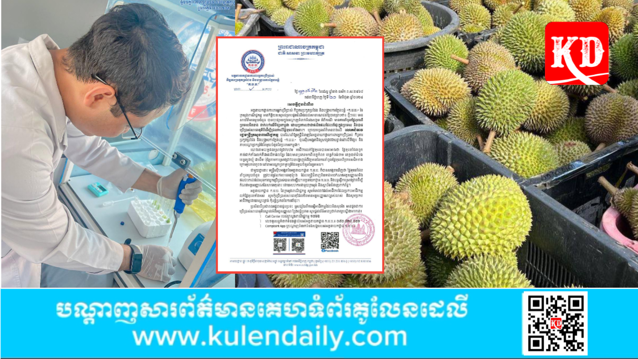 រាជធានីភ្នំពេញ៖ នៅថ្ងៃទី ២១ ខែមិថុនា ឆ្នាំ២០២៤ នេះ អគ្គនាយកដ្ឋានការពារអ្នកប្រើប្រាស់ កិច្ចការប្រកួតប្រជែង និងបង្ក្រាបការក្លែងបន្លំ «ក.ប.ប. នៃ ក្រសួងពាណិជ្ជកម្ម បានចេញនូវសេចក្តីជូនដំណឹងជម្រាបជូនដំណឹងដល់សាធារណជនអំពី ករណី មានការនាំចូលផ្លែទុរេនពី ប្រទេសជិតខាង ដាក់លក់លើទីផ្សារកម្ពុជា ដោយប្រកាសថាជាផលិតផលដែលដាំដុះក្នុងប្រទេស និងបាន ប្រើប្រាស់សារធាតុគីមីដើម្បីជ្រលក់លើផ្លែទុរេនទាំងនោះ ដែលក្នុងពេលថ្មីៗនេះ មាន សារព័ត៌មានមួយចំនួន បានចុះផ្សាយក្នុងបណ្តាញទំនាក់ទំនងសង្គម។